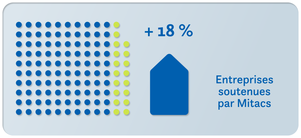 Mitacs-supported enterprises are creating jobs and growing their workforce. They experienced a steady increase of 18 percent in employment levels over seven years. Non-supported companies presented a downward trend, with a reduction of 5 percent of their workforce in the same period.