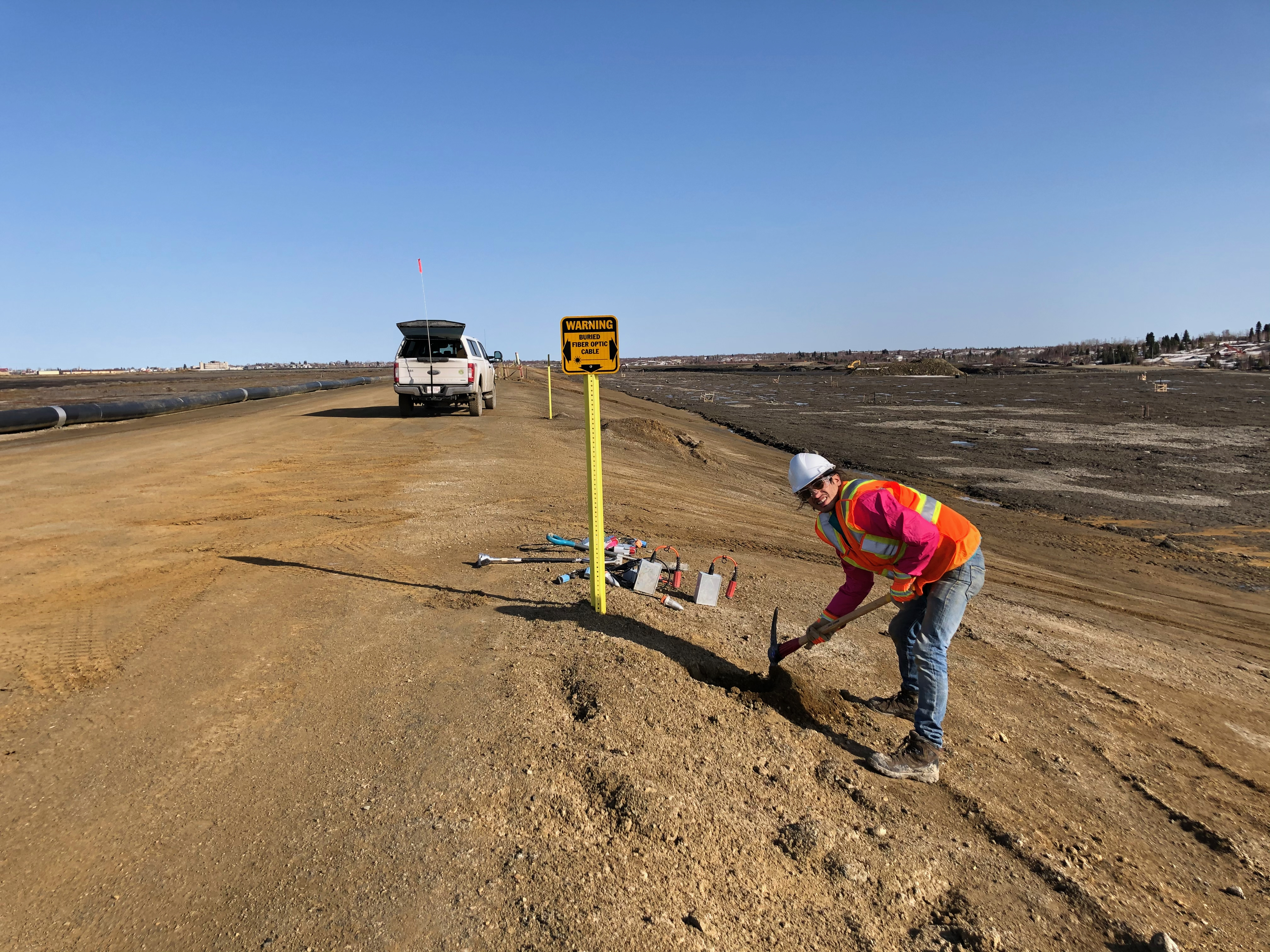 Susanne Ouellet, Ph. D., participante à Accélération de Mitacs, Jan Dettmer, Ph. D., professeur superviseur du département Terre, Énergie et Environnement de l’Université de Calgary, en partenariat avec BGC Engineering de Vancouver et Luna OptaSense, de la Virginie, aux États-Unis.