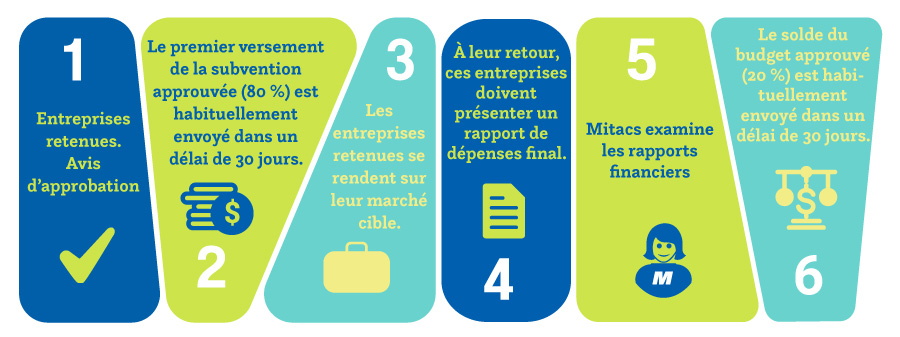 Mitacs forwards travel grants in two separate instalments to the company only after successful applicants have signed and submitted their required documents.