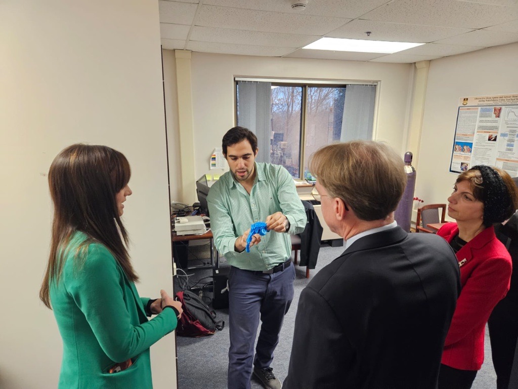 La ministre Cable était accompagnée de Jennifer Cleary, cheffe de la direction de Research Manitoba, de Sylvain Giguère, vice-président de Mitacs, de Heidi Stuck, directrice générale par intérim de la Riverview Health Centre Foundation, de Kathleen Klaasen, cheffe de la direction du Riverview Health Centre, ainsi que de Zahra Moussavi, professeure à l’Université du Manitoba. Il et elles étaient accompagné·es de deux stagiaires financées par Mitacs du RHC, Rashmita Chatterjee et Maria Uehara, toutes deux chercheuses postdoctorales à l’Université du Manitoba.