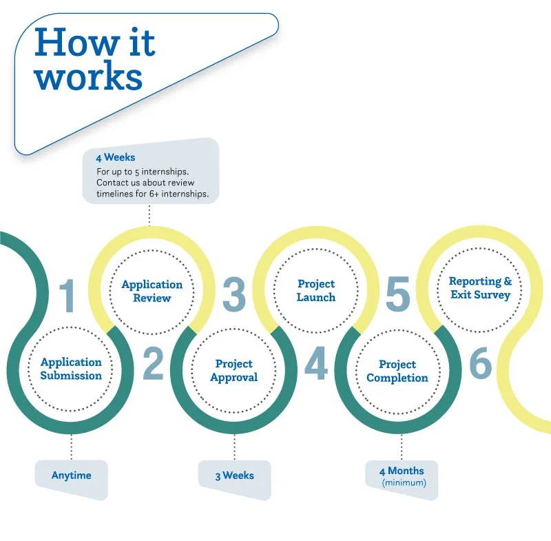 • Projects can be extended to up to six months to provide flexibility for the intern’s other priorities.